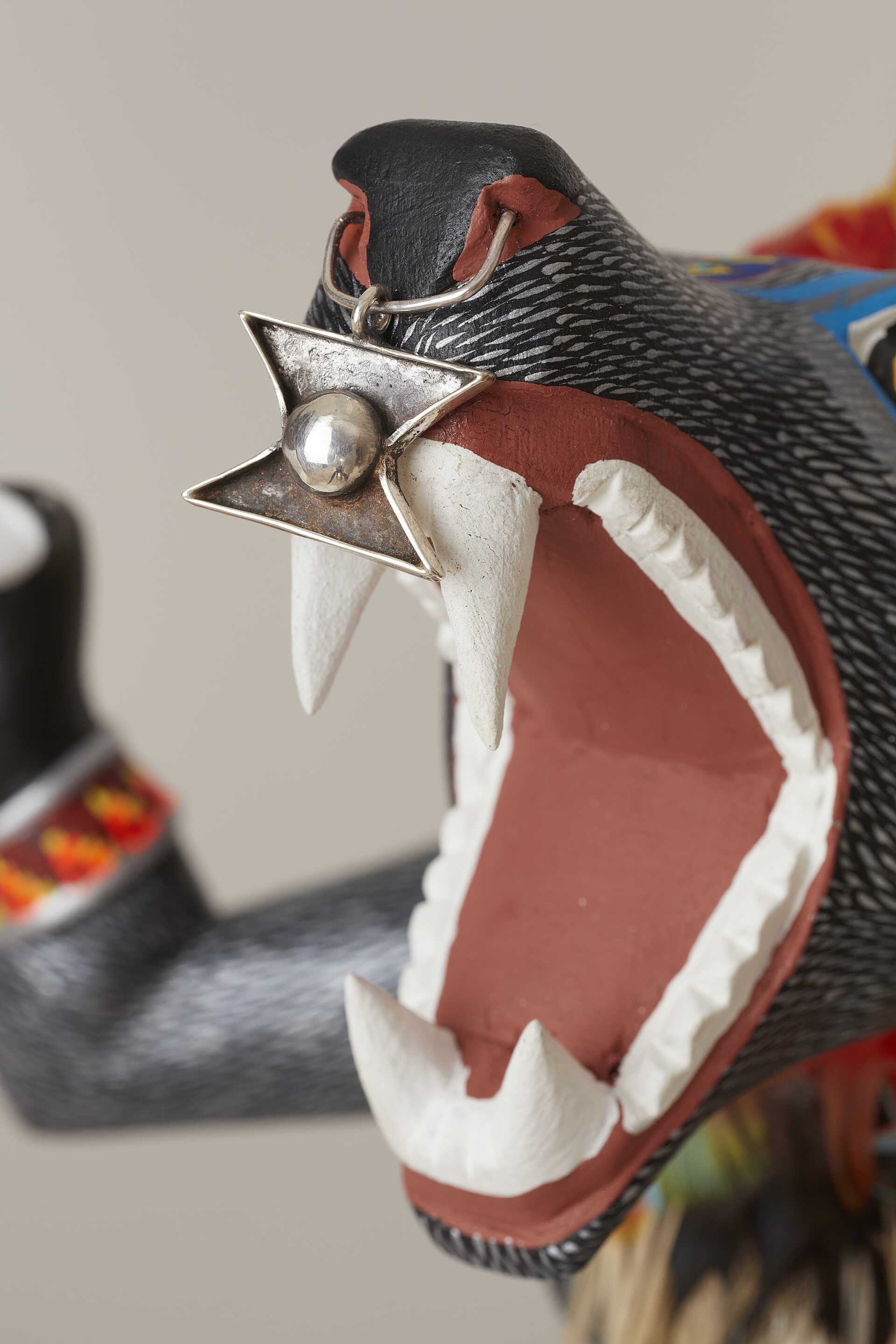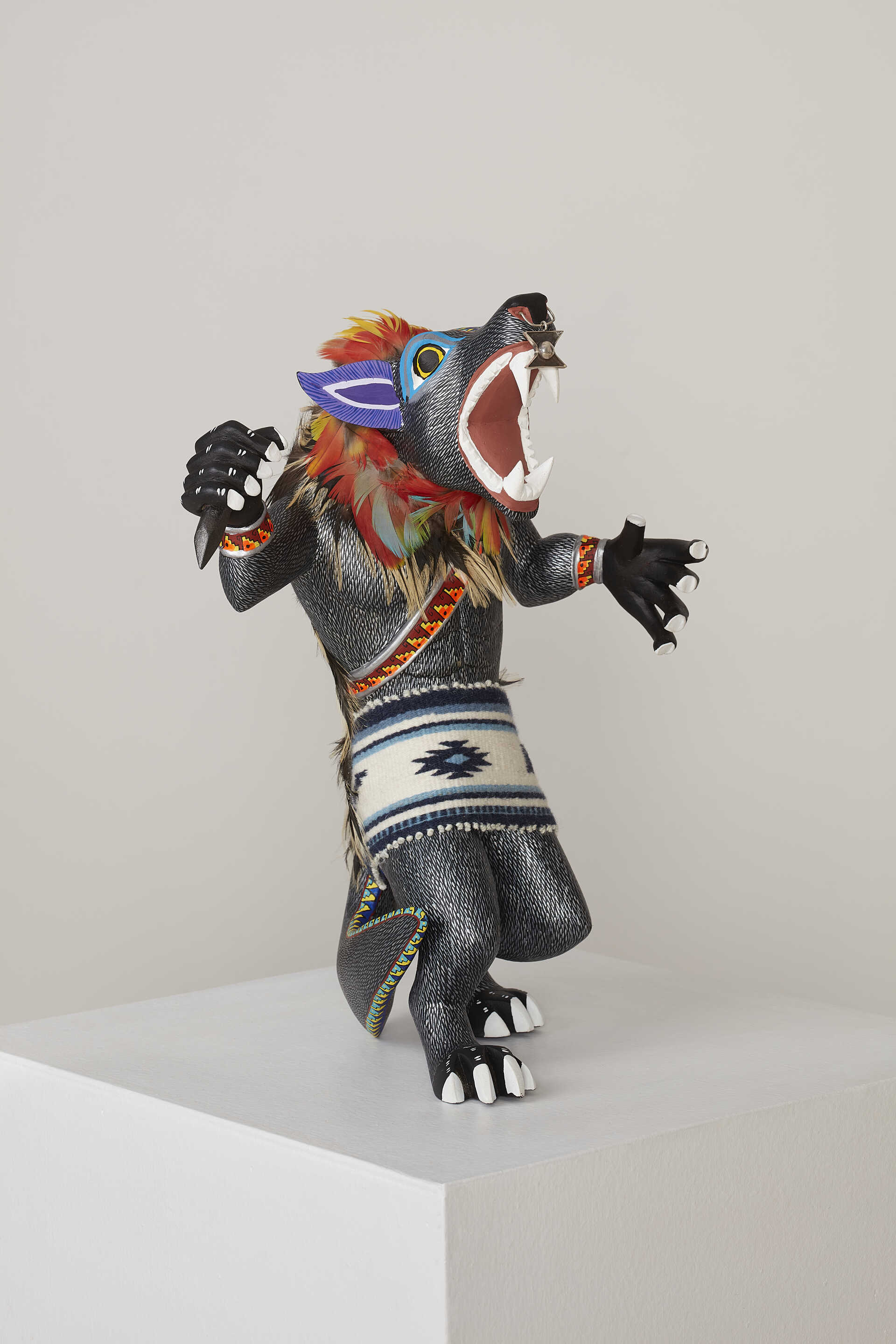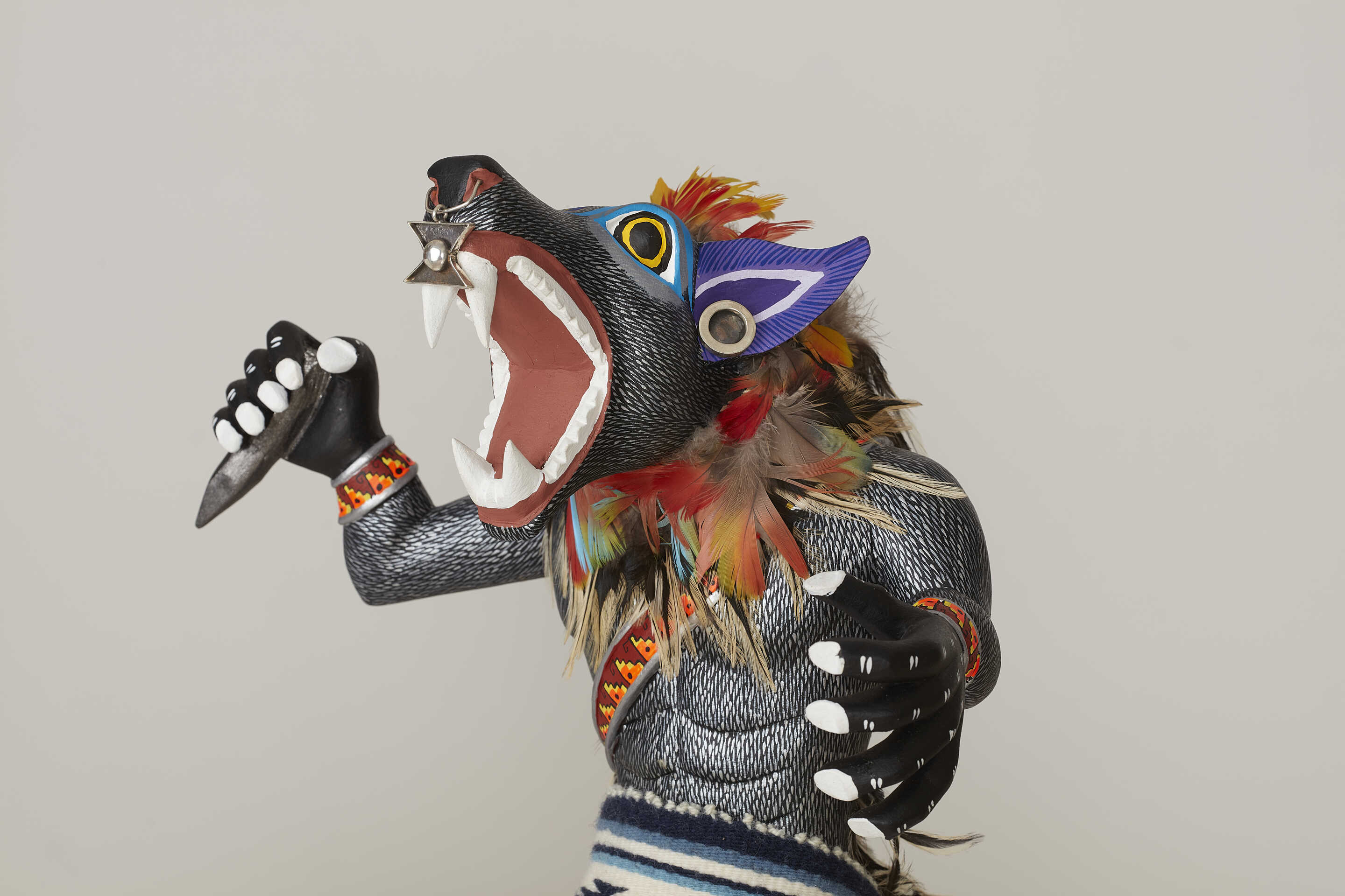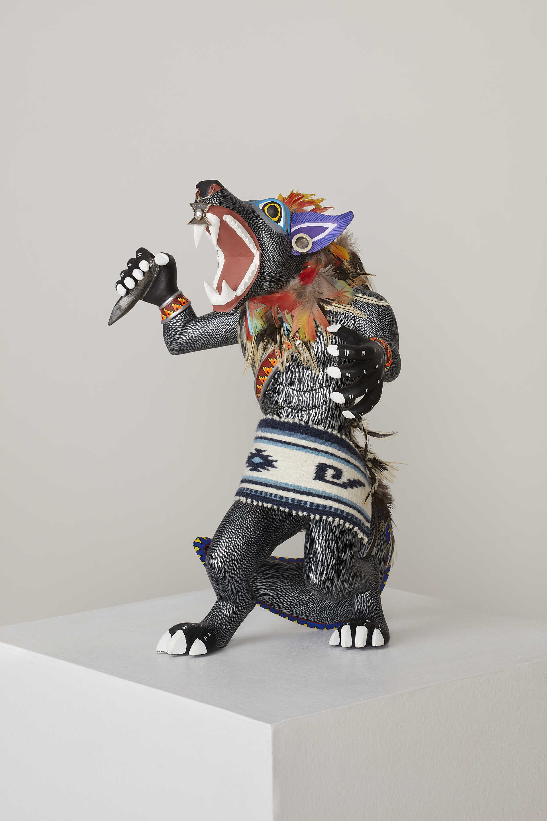 Nuestra pieza de lobo mexicano, un animal emblemático de la cultura mesoamericana que renuncia a sus propias creencias y orígenes, representa a los pueblos originarios, que veían en la alianza la oportunidad de liberarse del sometimiento del imperio azteca y las condiciones para mejorar su situación política y social en Mesoamérica.