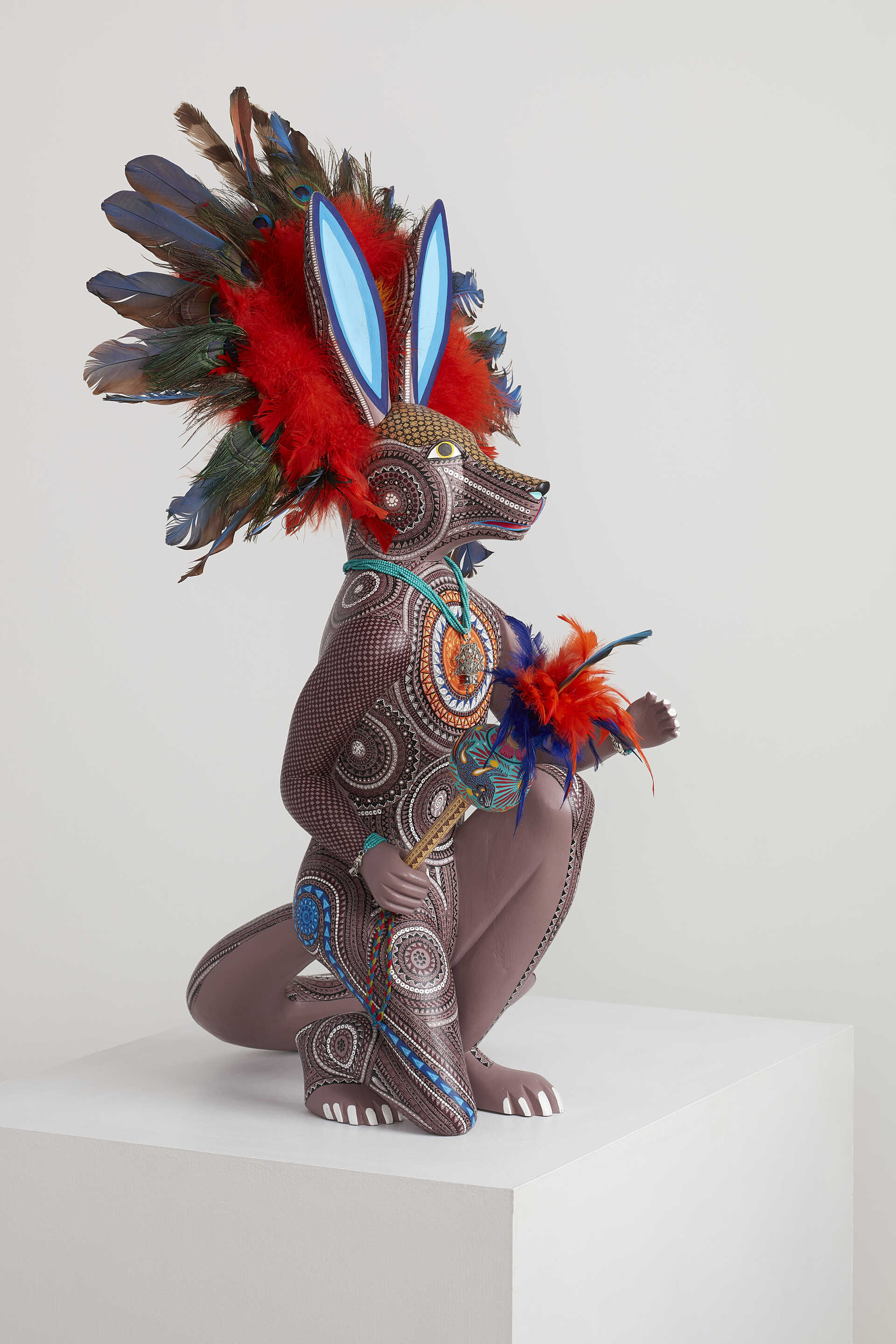 El nagual guerrero coyote, en esta colección, representa uno de los animales oriundos de este continente, ofreciendo una danza ritual a los Dioses, pidiendo la gloria en las batallas.